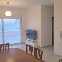 Apartmán k pronájmu v Sarandě – více než 100 m² prostoru s fantastick ým výhledem na moře i centrum města. Jen 10 minut chůze od městské pláže. Přímo před vchodem obchod, restaurace 3 minuty pěšky a obchodní dům také jen 3 minuty chůze. Apartmán nabízí 2 ložnice s extra velkými manželskými postelemi a pohodlný rozkládací gauč. Ideální pro rodiny i skupiny přátel.